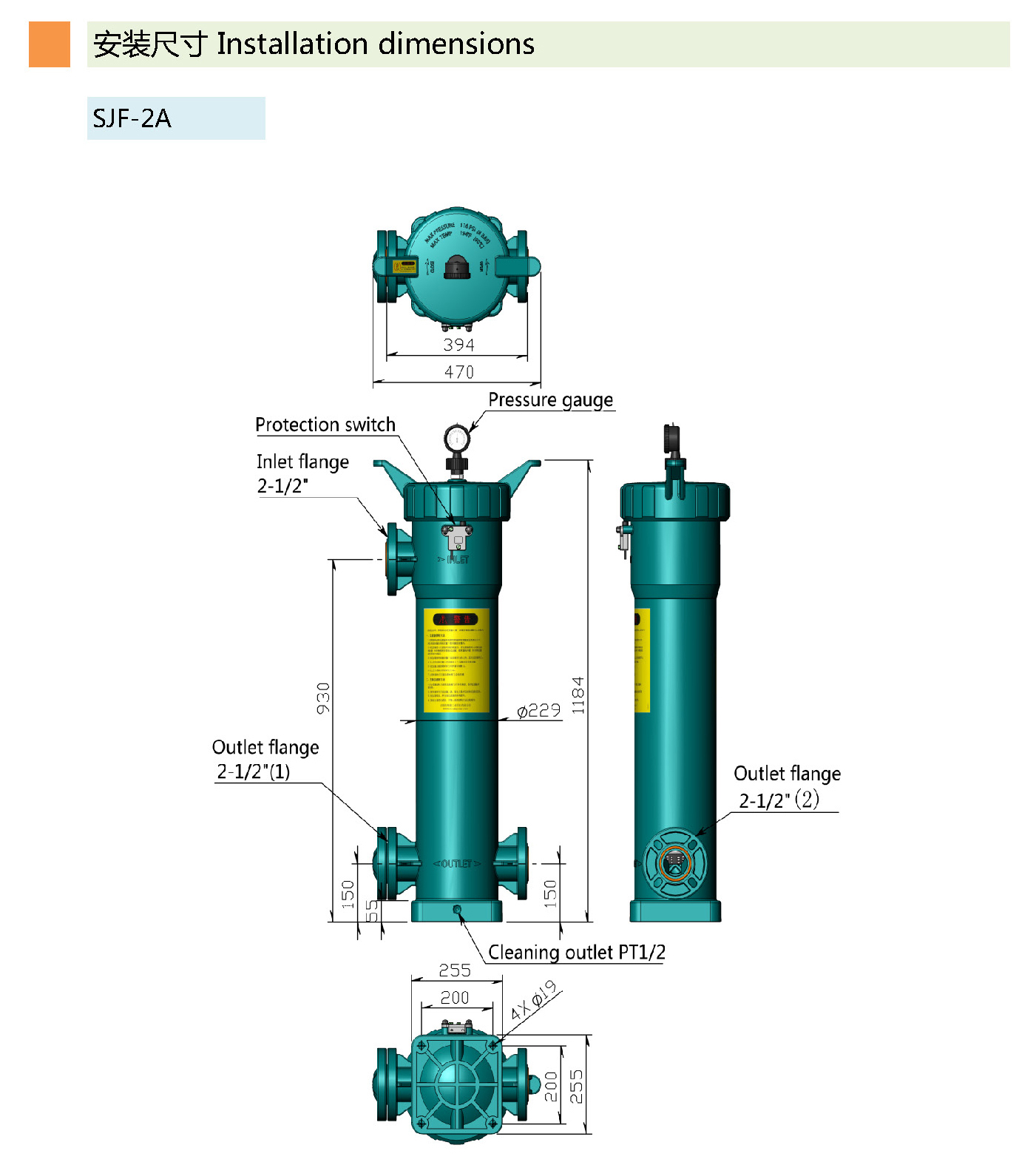 .進(jìn)出水口采用法蘭式連接,堅(jiān)固耐用,可配各國(guó)標(biāo)準(zhǔn)管道法蘭使用。