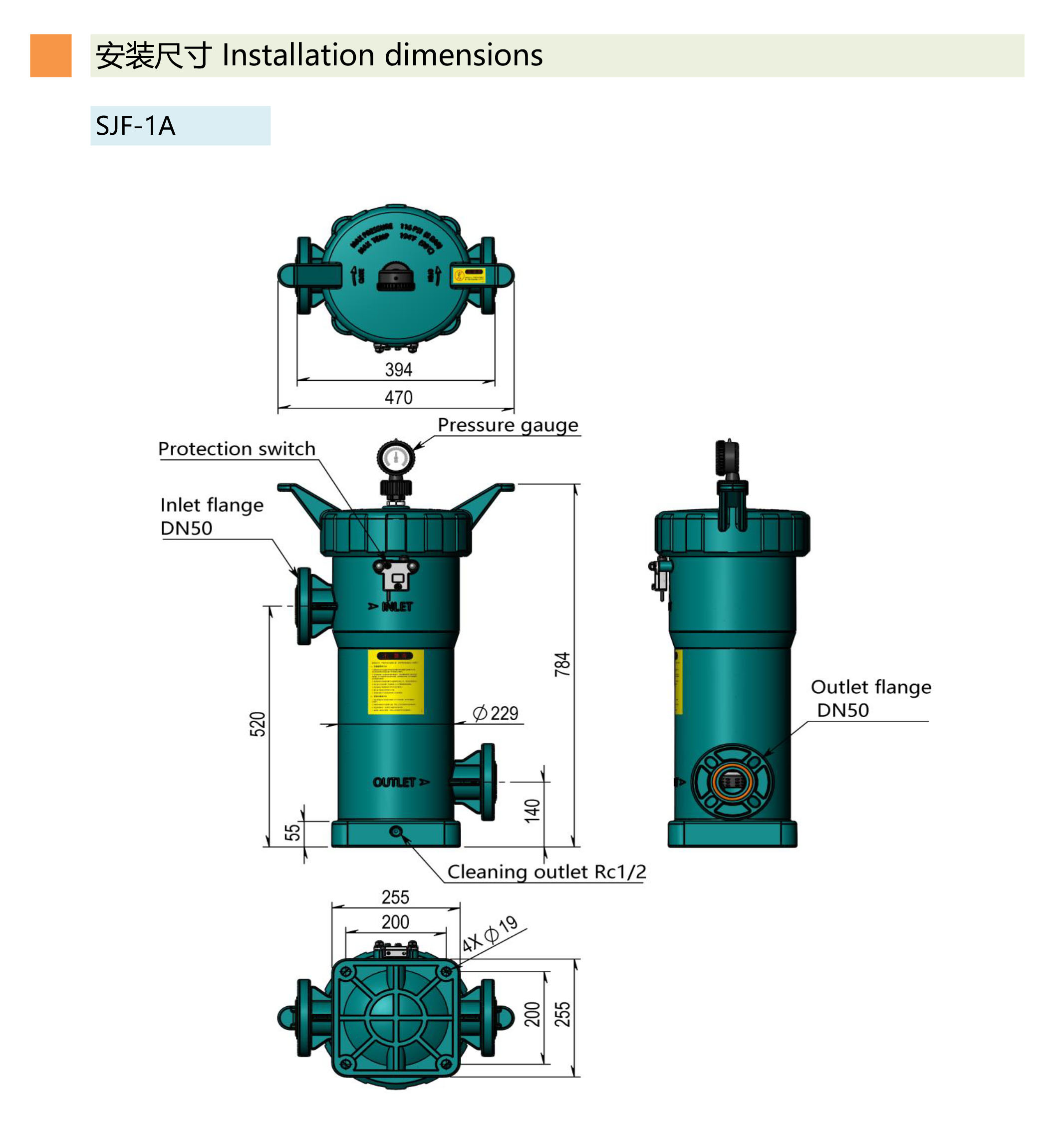 ●進(jìn)出水口采用法蘭式連接,堅(jiān)固耐用,可配各國標(biāo)準(zhǔn)管道法蘭使用。